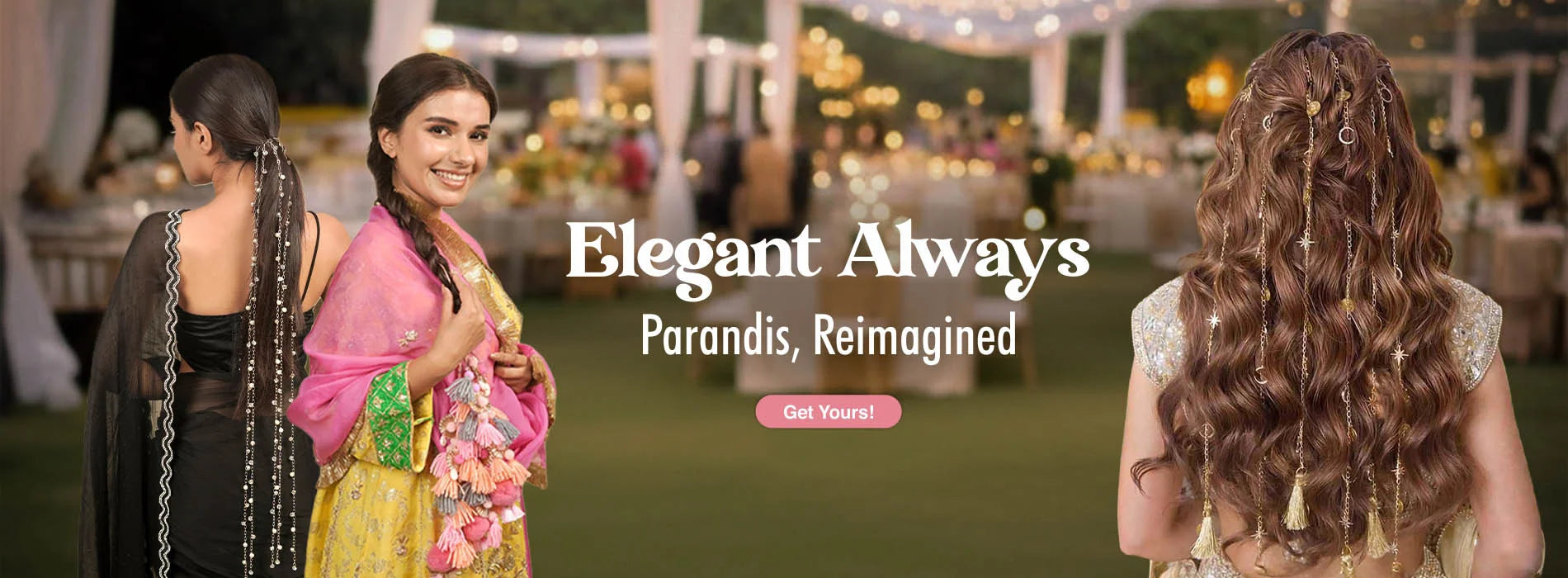 Elevate your style game with our range of premium quality trendy and stylish hair accessories. All our products are handmade with finest materials and crystals to give you a polished look.