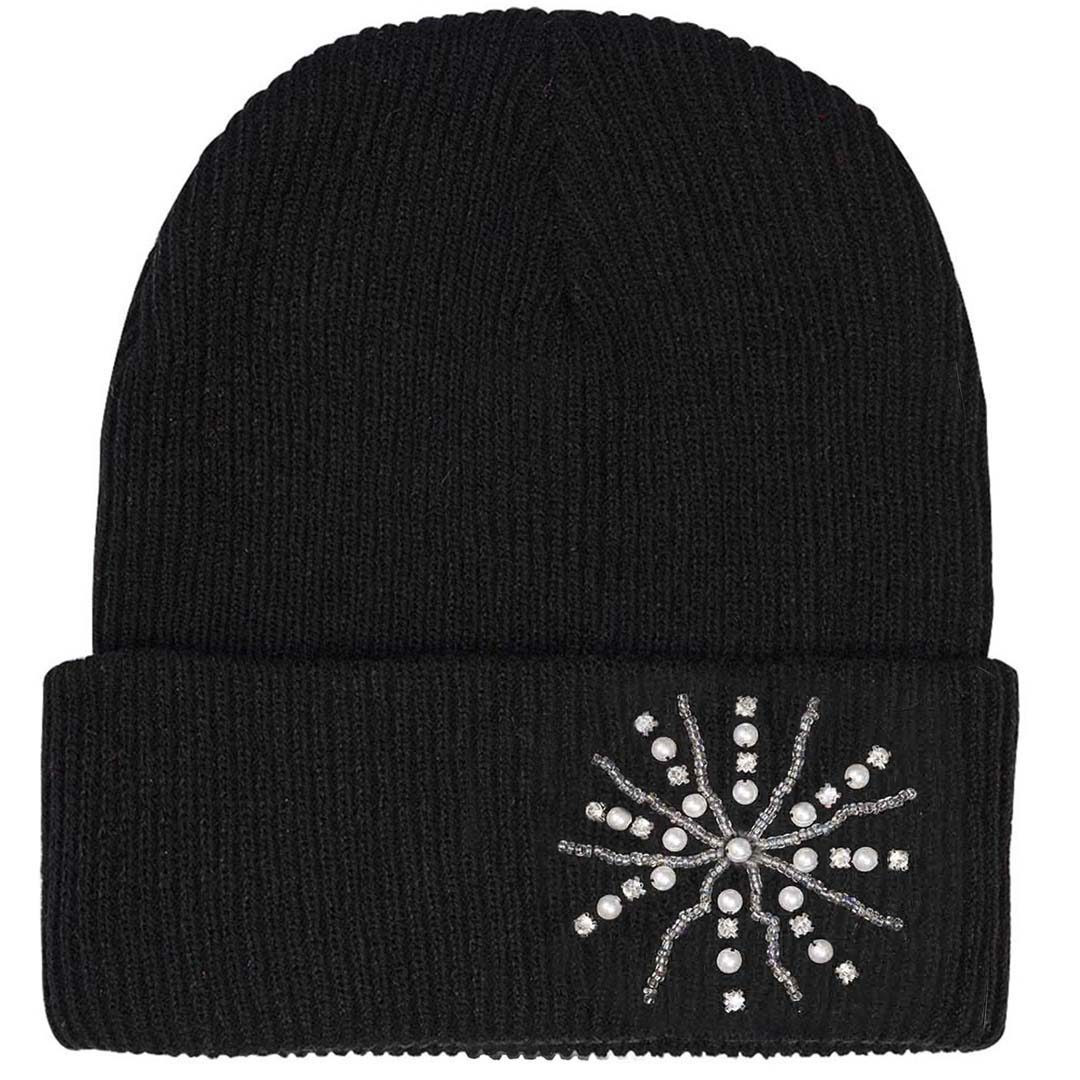 Black Beanie with Pearls & Crystals