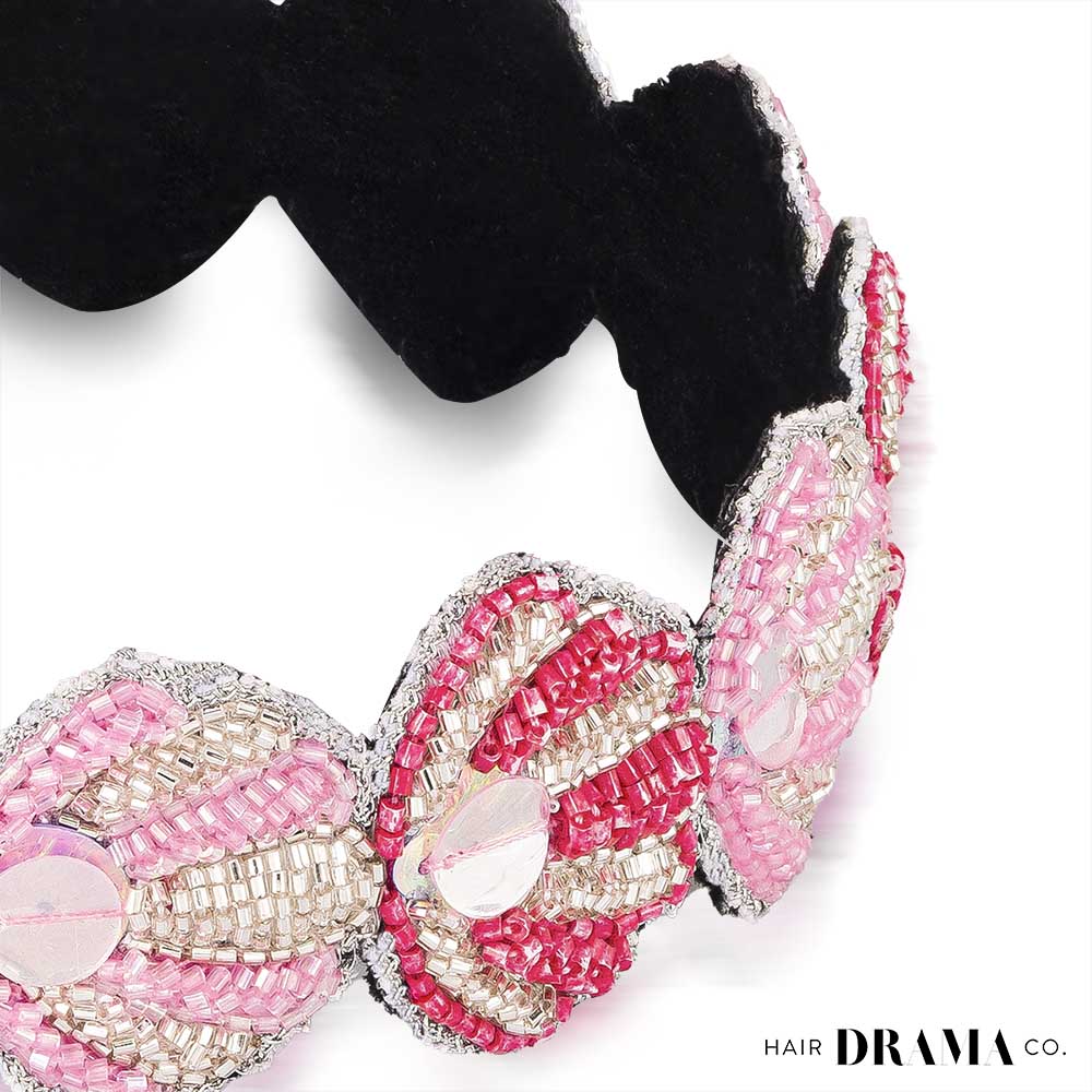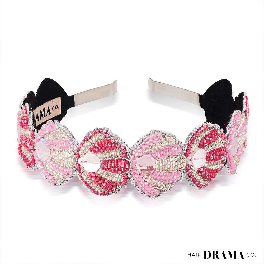 - Whether you style it with a shirt dress or have a #pink moment with a monochromatic outfit, there are so many ways to demand attention with our shell-designed hair accessory. It's detailed with glass beads, shining threads and holographic sequins.