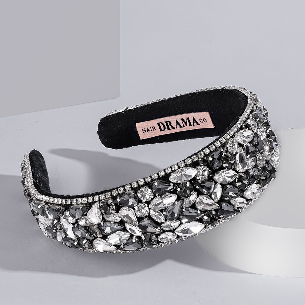 Fabric Color - Black Fabric Type - Cotton Material Color - Grey & Silver Material Type - Rhinestones & Crystal Chain Ready to amp up your casual look? Get your hands on our rosemary hair band! This beautiful handcrafted hair...