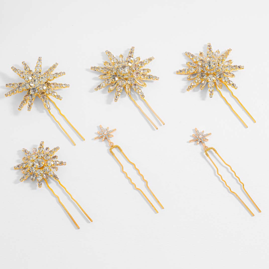 Celeste Crystal U Hair Pins - Set of 6 - Gold