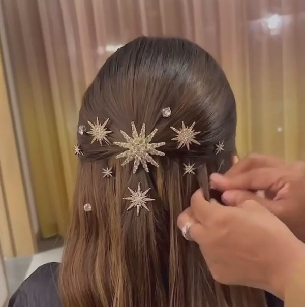 This set of crystal hair pins is designed to add sparkle and sophistication to your special days. Handcrafted with precision-cut crystals, each pin can be worn individually or stacked together to create a glam look — making them the perfect accessory for weddings, receptions, festive functions, or even cocktail nights.