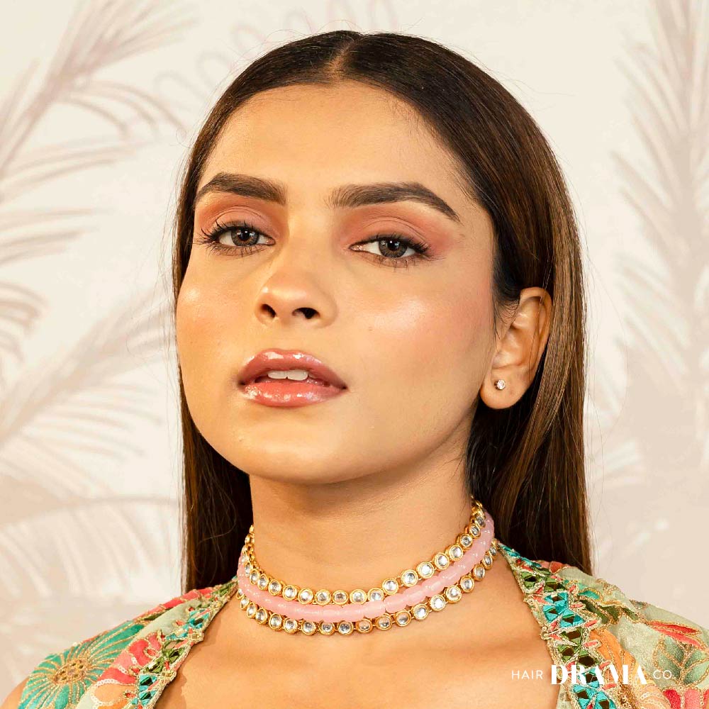 - Take your ethnic glam to the next level with our light pink crystal-studded sheesh patti. Made from the finest gold-plated material, this women hair accessory can make you the head turner at an event effortlessly.