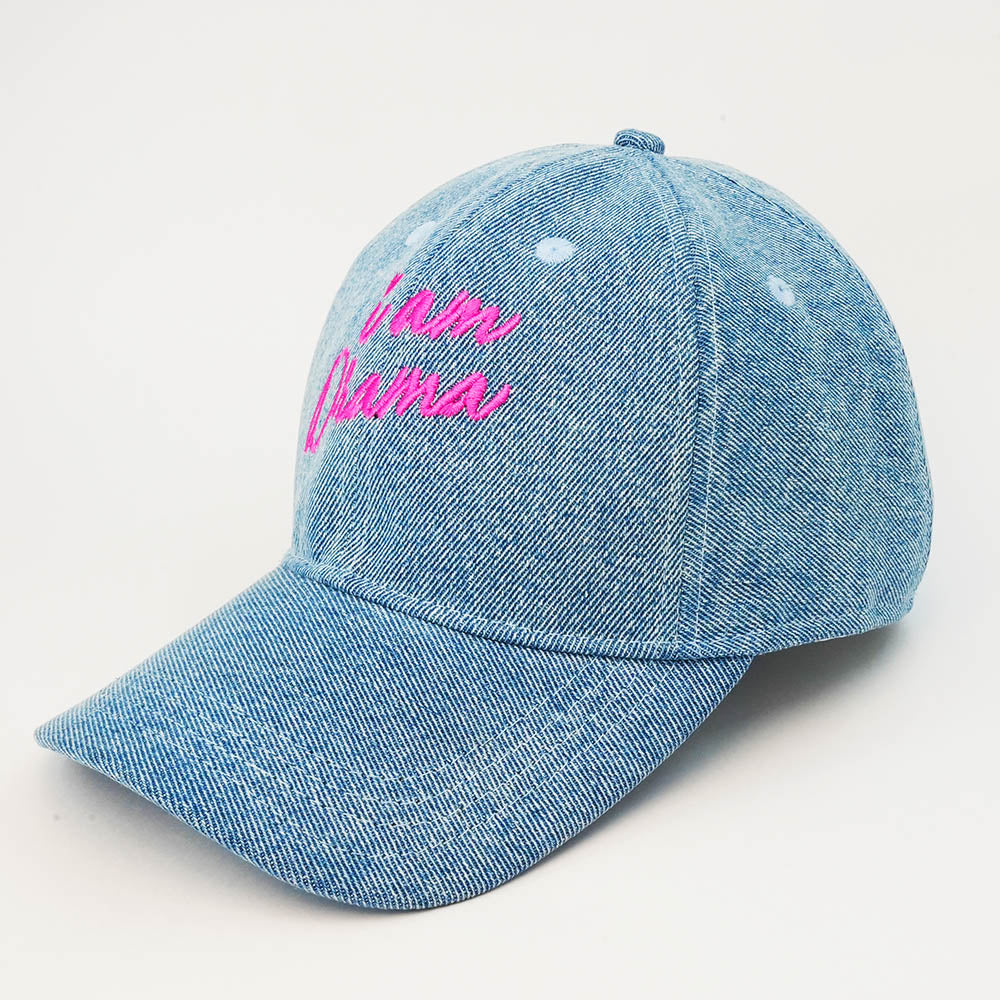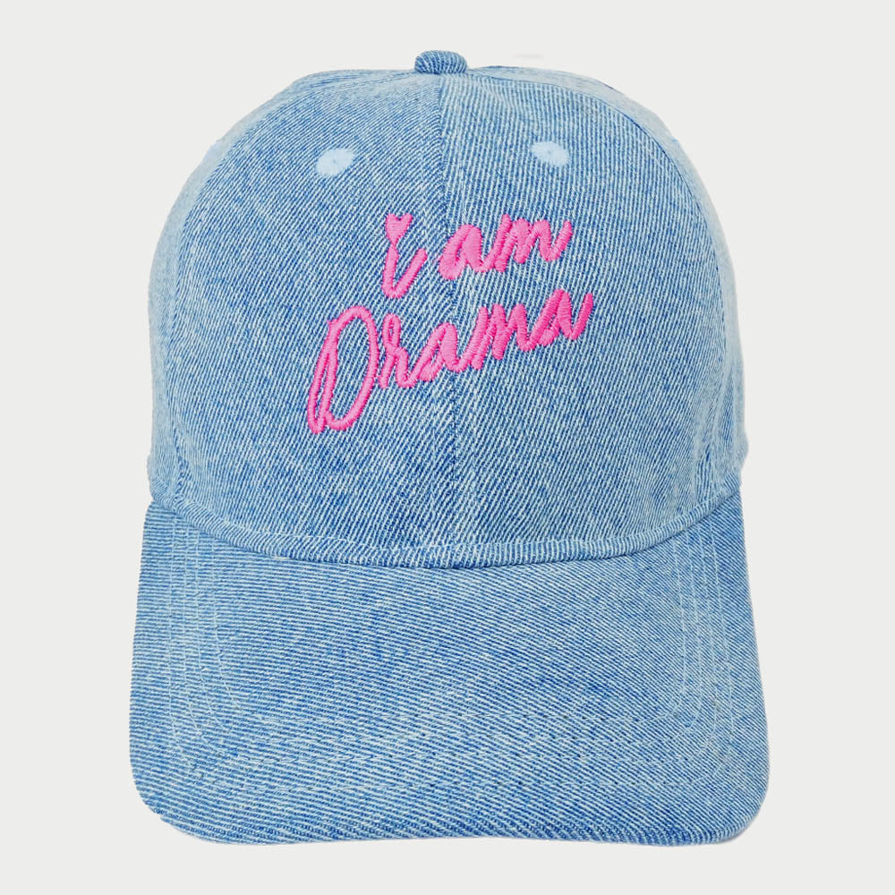 "I Am Drama" Embroidered Denim Baseball Cap - Light Blue