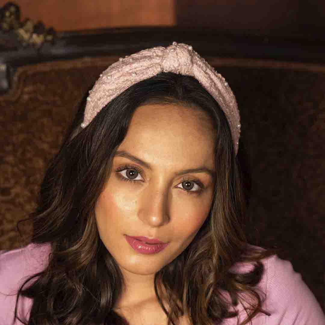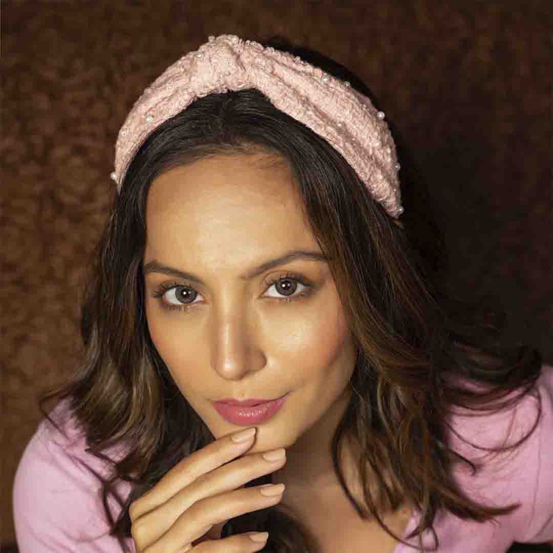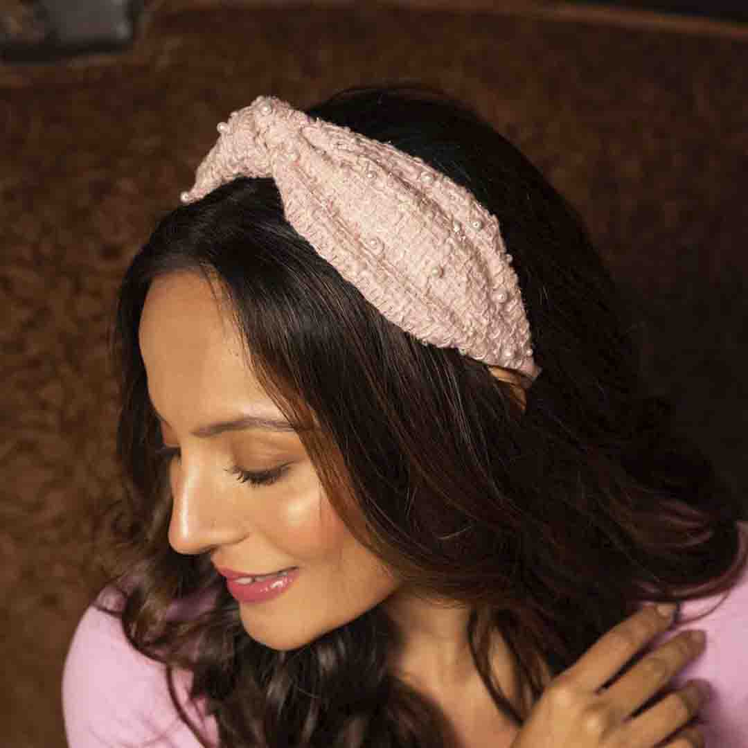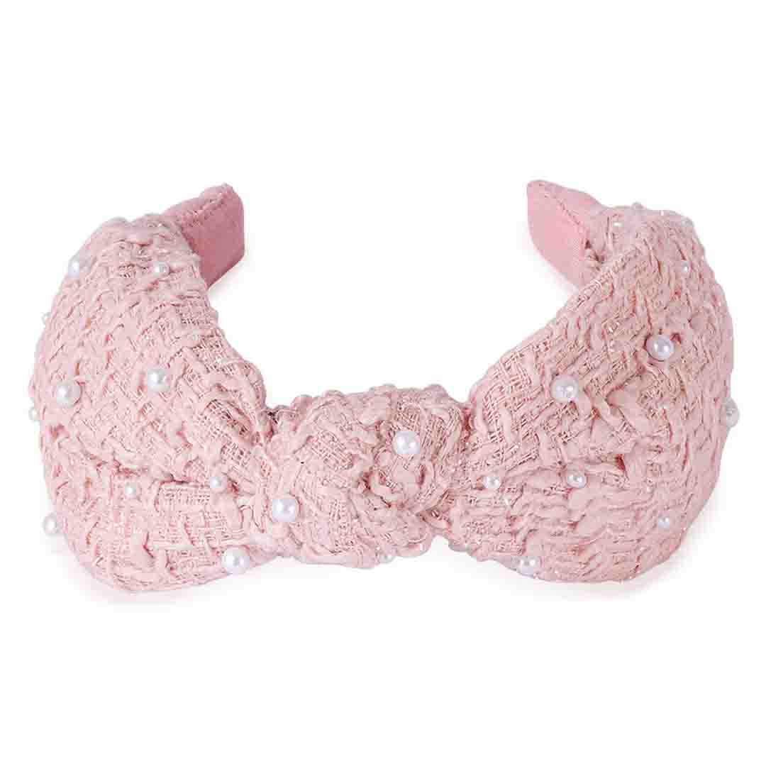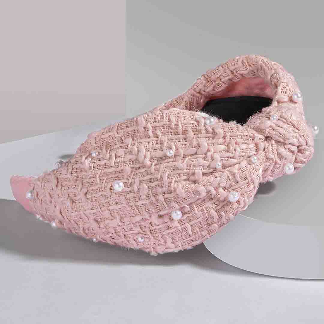 - Our gorgeous light pink Tweed Knotted Hair Band embellished with pearls is enough to make a fashion statement and is the perfect day hair accessory you can own this winter.