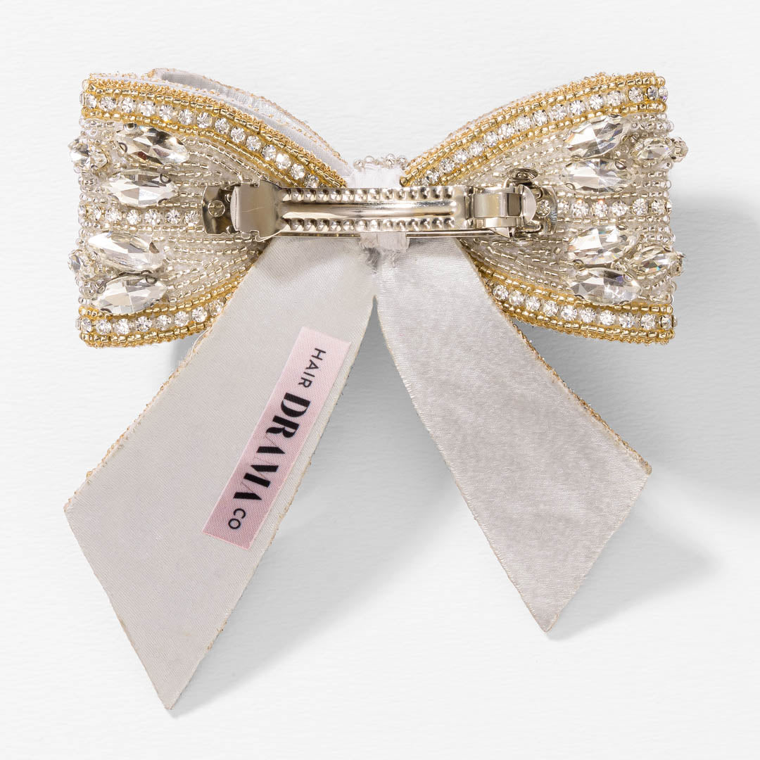 Embellished Crystal Hair Bow Barrette Clip - Gold & Silver