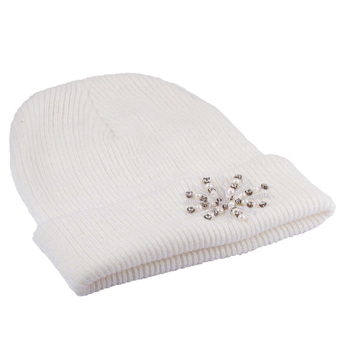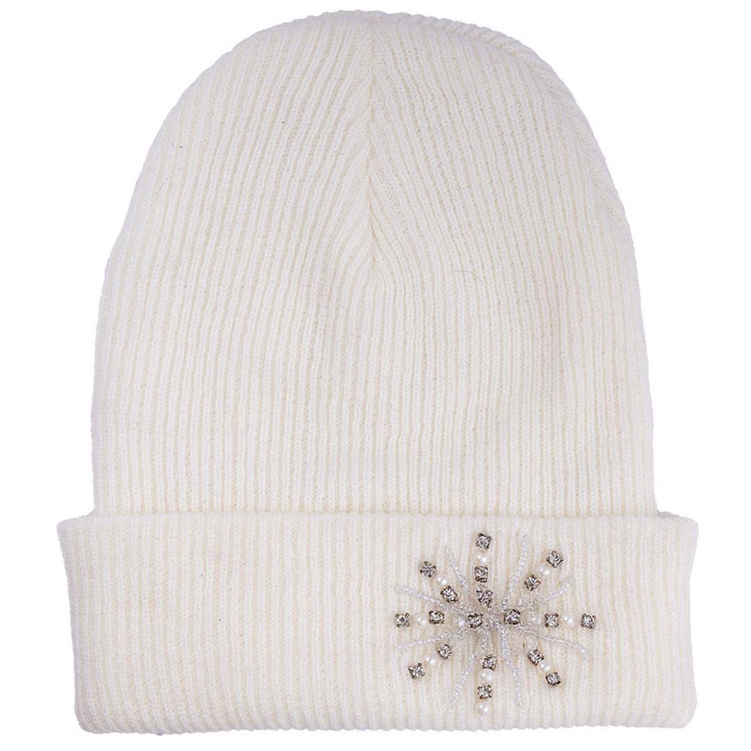 White Beanie with Pearls & Crystals