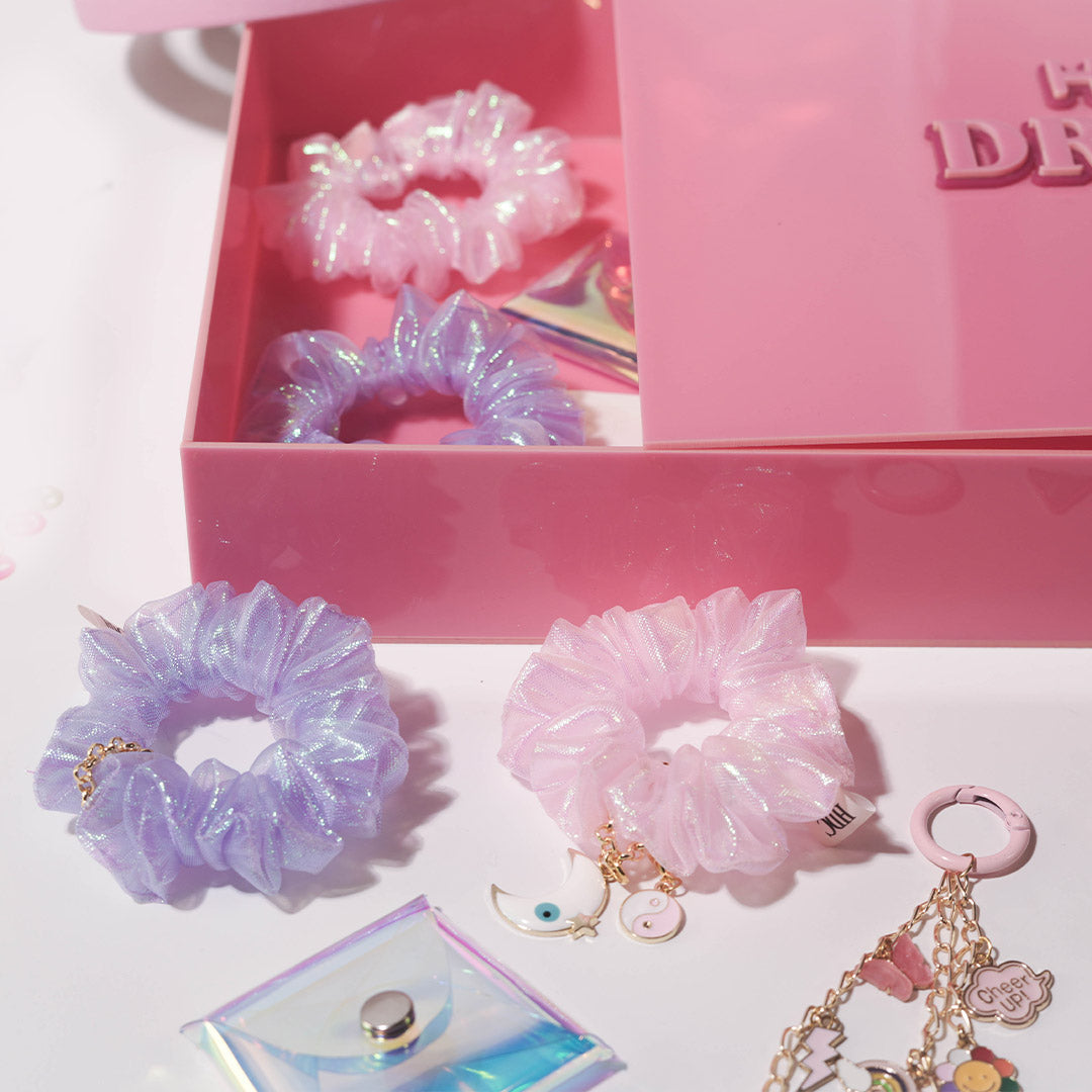 Meet our Unicorn DIY Hair Accessory & Charm Gift Box — a curated set of 18 hair accessories, a bag charm, 24 detachable charms, a holographic pouch to keep it all together and much more.