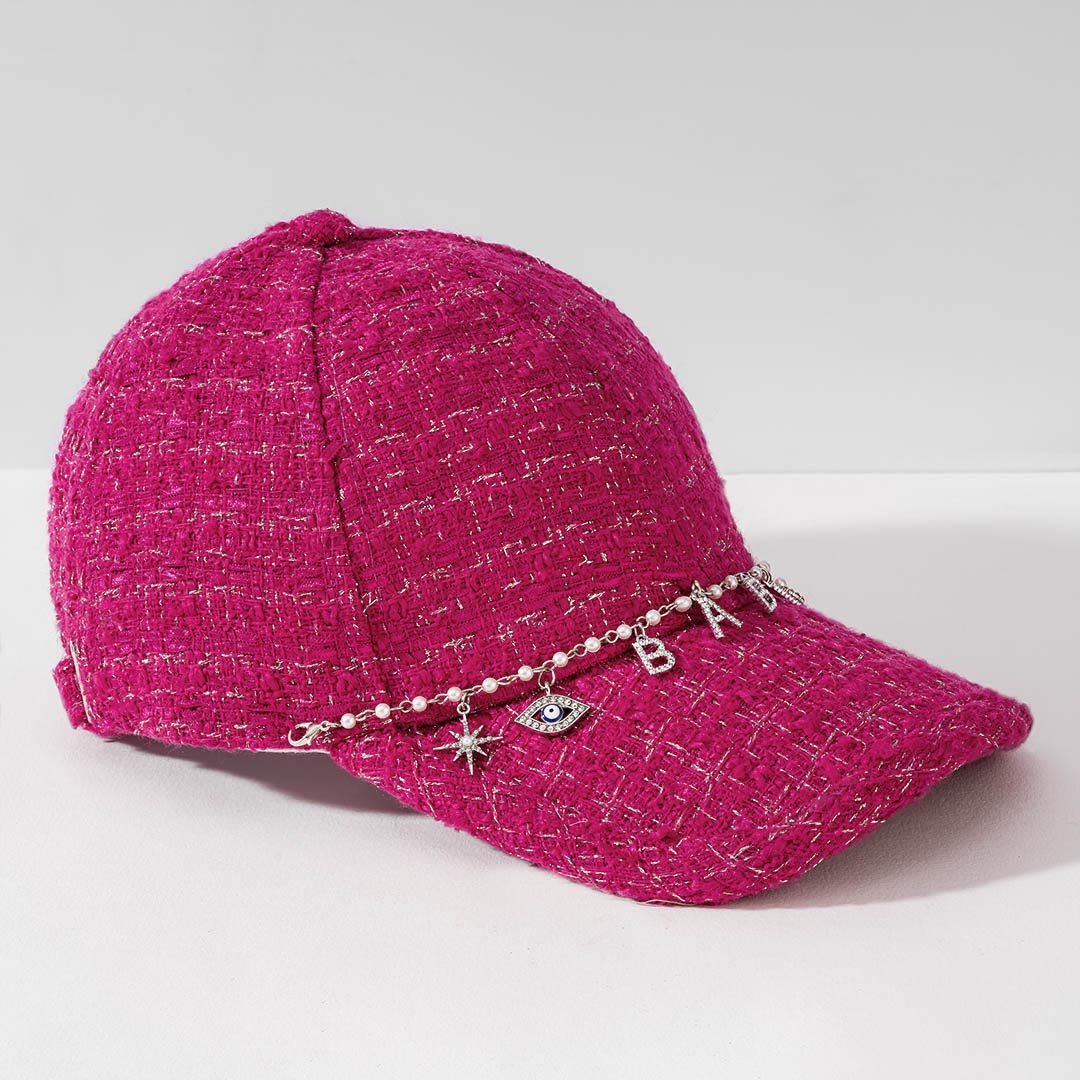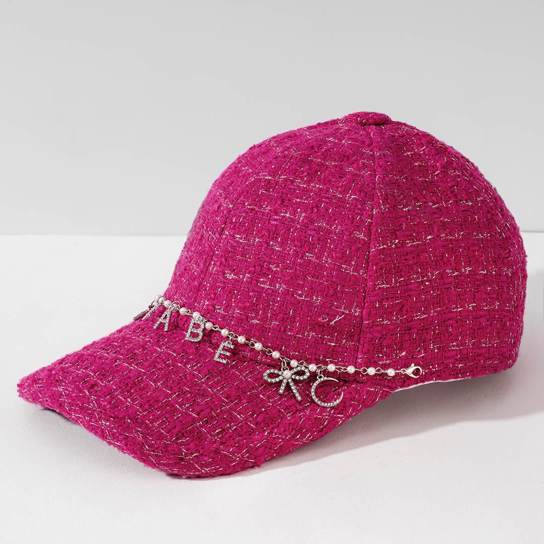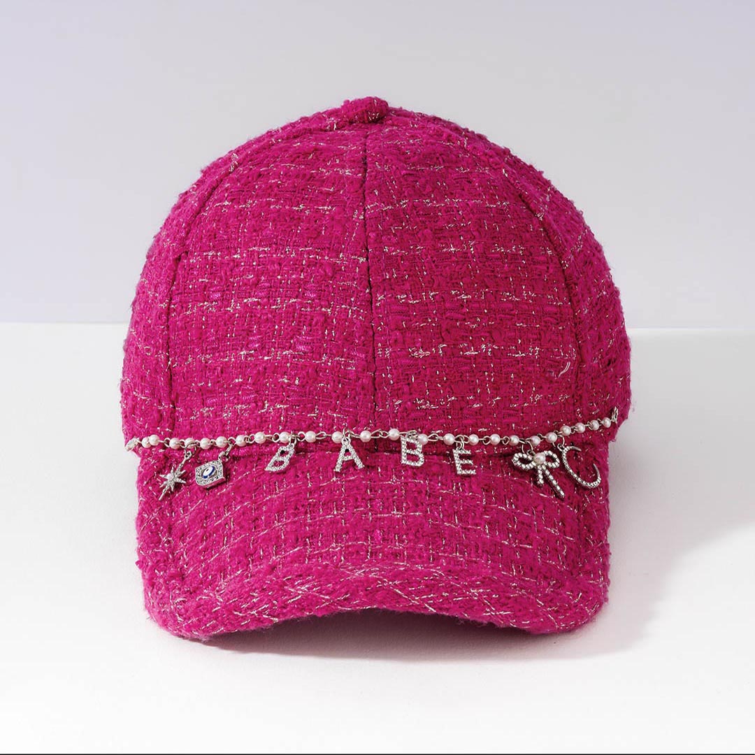 "Babe" Charm Tweed Baseball Cap - Hot Pink