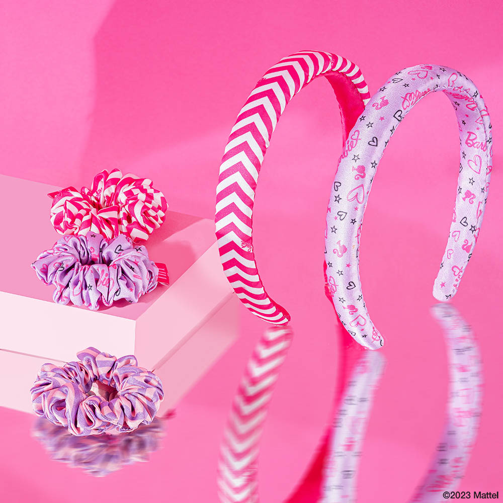- This set contains 2 puff hair bands and 3 scrunchies. Feel like an iconic Barbie with this gift set!