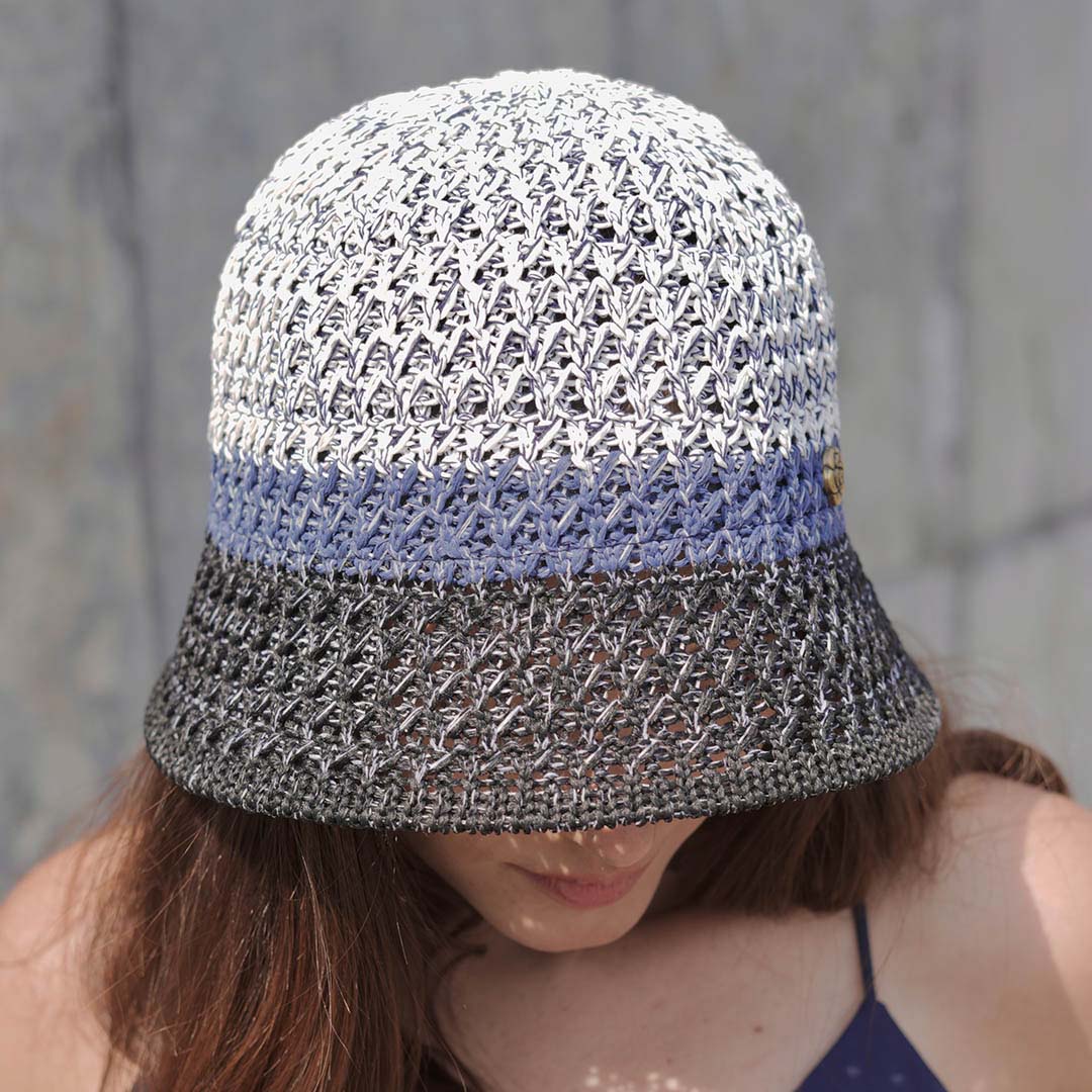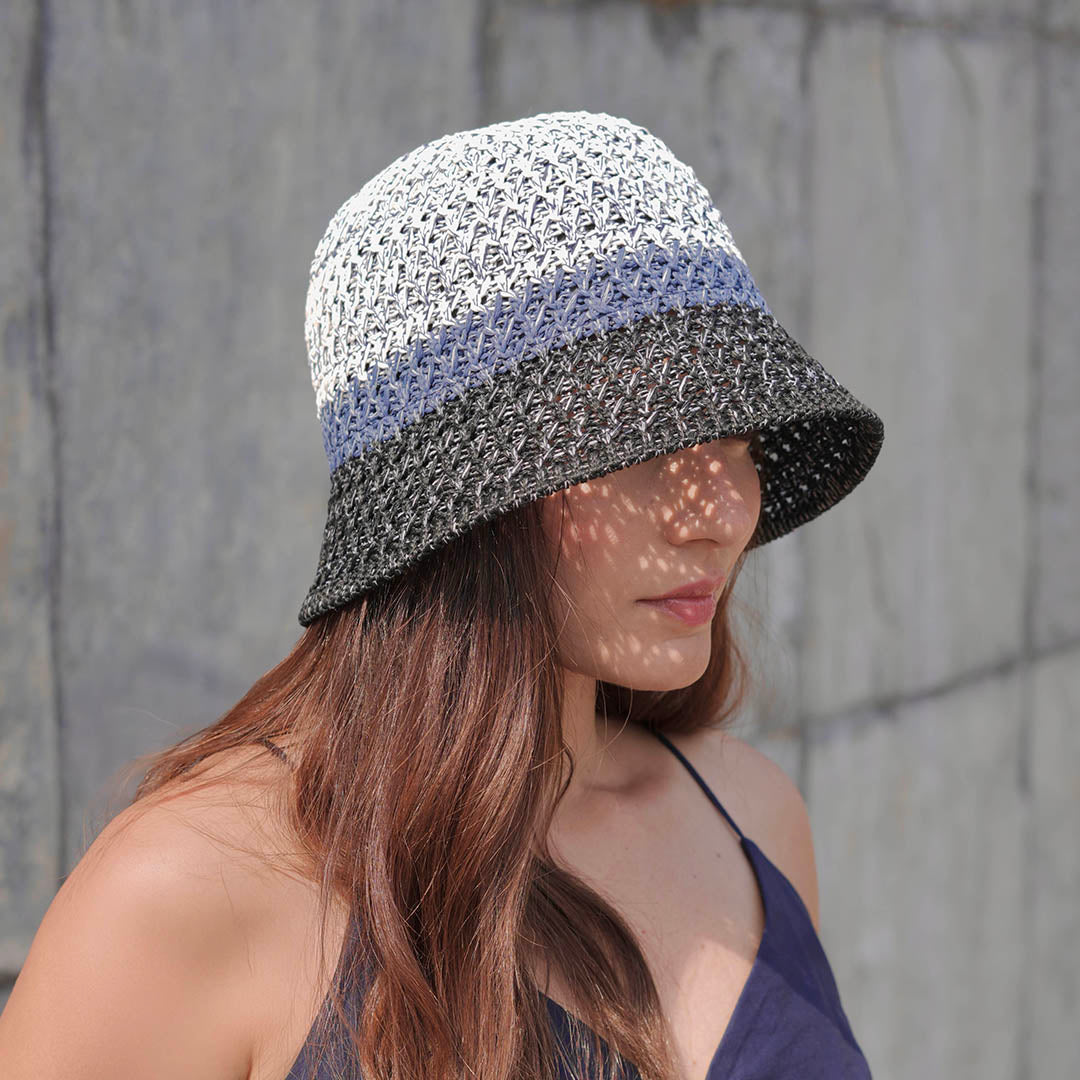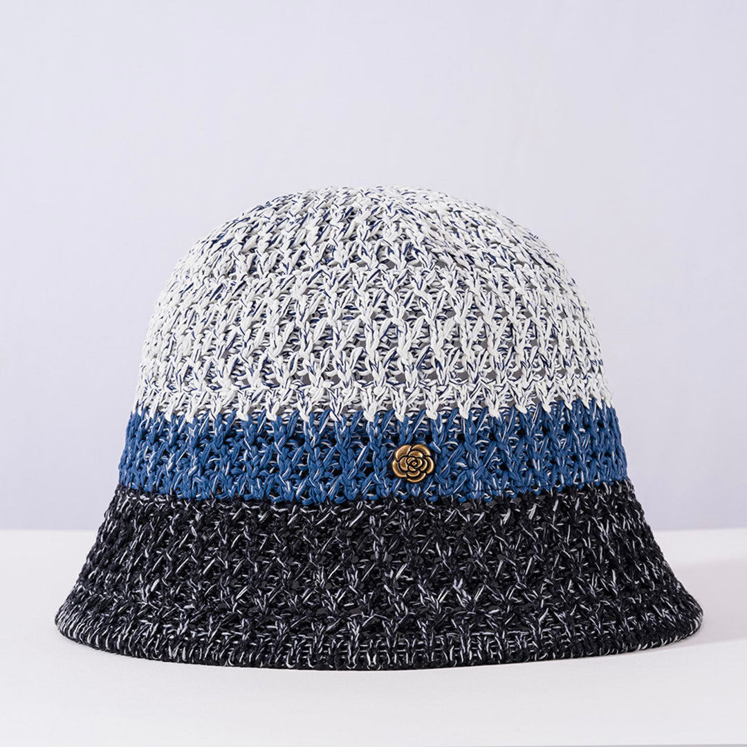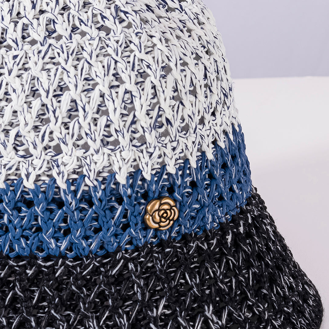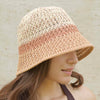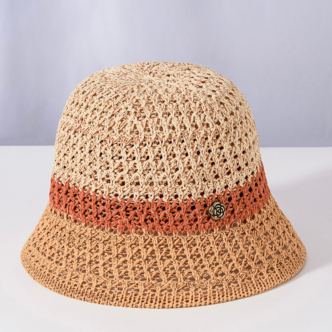 Crochet Beach Bucket Hat with Rose Charm - Shades of Beige