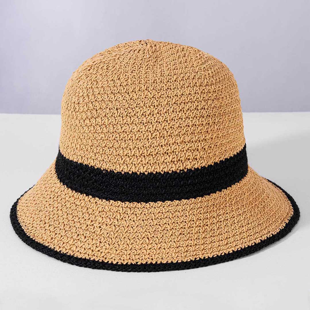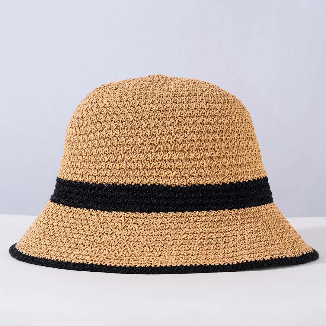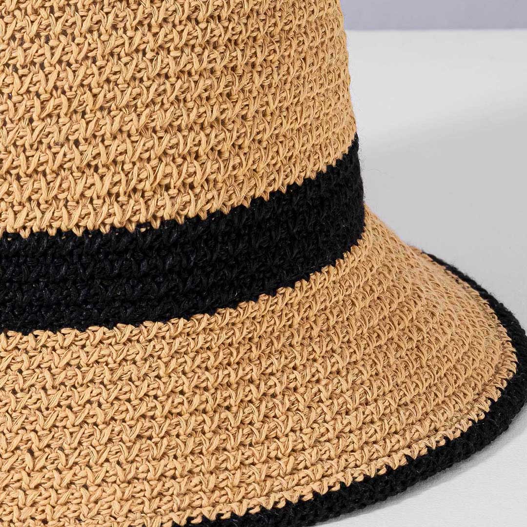 Crochet Bucket Hat - Tan & Black