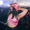 - Made with satin silk, you can pair this pink hair accessory with a simple white dress during the day, or be edgy with leather pants and a cropped top for a night out.