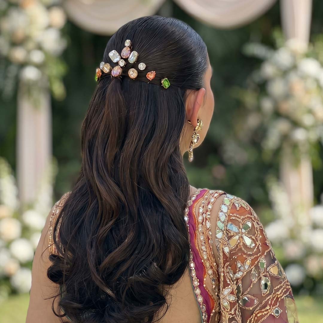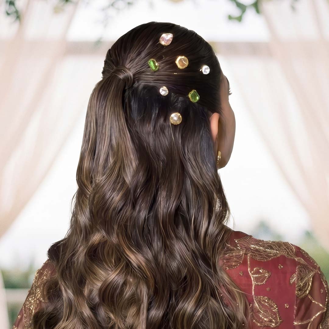 Each crystal is set on a U-pin base for easy styling so you can go from minimal to maximal in seconds. Think of them as tiny jewels for your hair, made to catch the light (and attention). Scatter across a messy bun for an effortless glam finish or alternate colours through braids for a playful, styled look. Stack them for a statement moment for your sangeet, mehendi, or carnival function.Ā