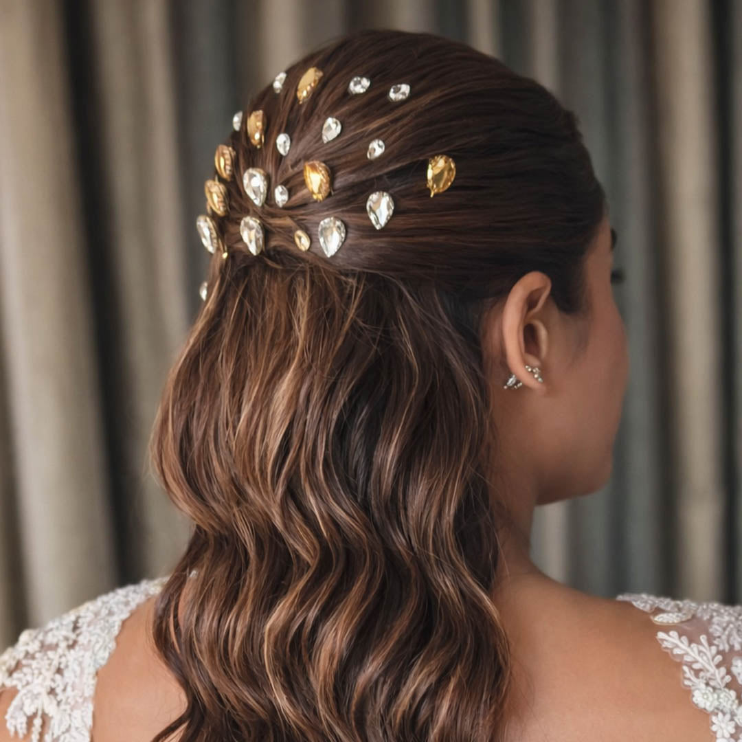 Designed for versatility, these pins slide seamlessly into buns, braids, ponytails, or soft waves, giving you that styled but effortless finish. Whether you’re stacking them for a statement or scattering them for subtle shimmer, they’re made to play.