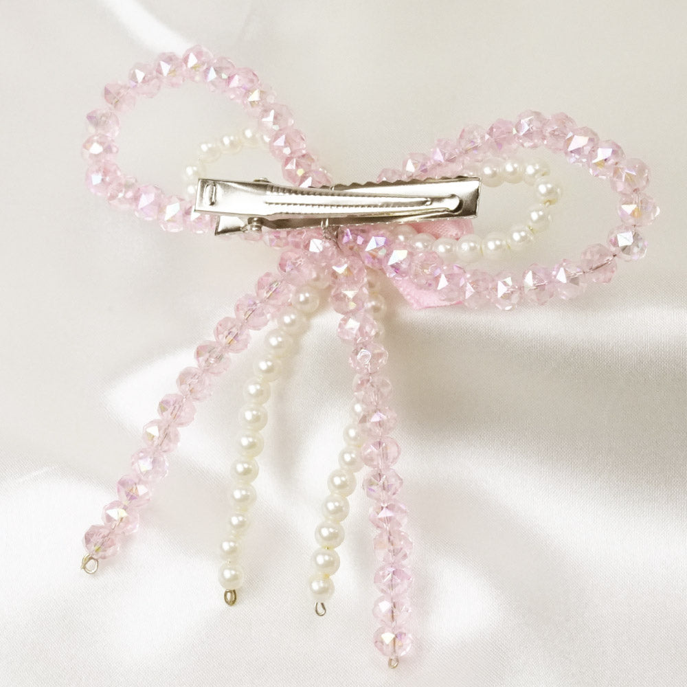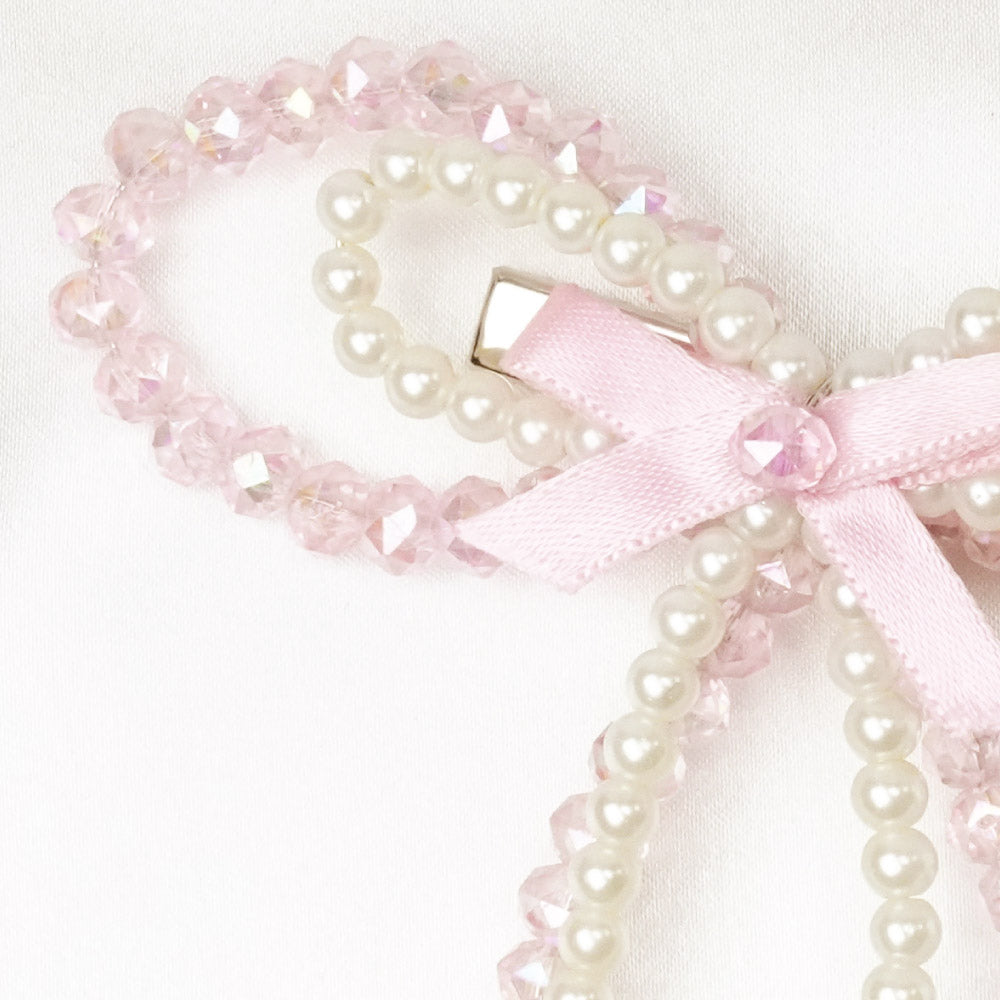 Embellished Crystal & Pearl Hair Bow - Pink & White