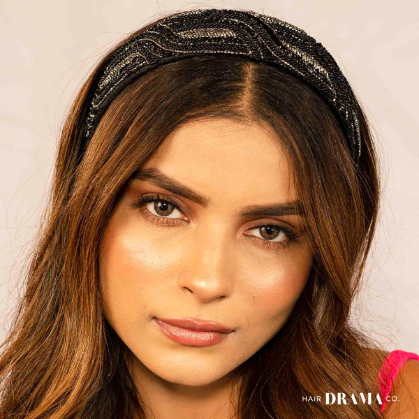 - A premium embellished flatband in black & silver to glam up all your outfits!