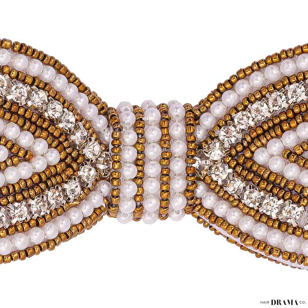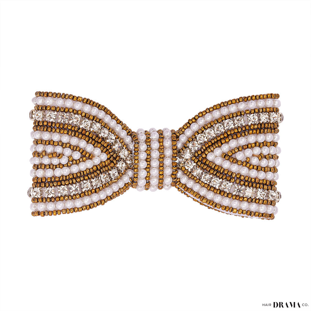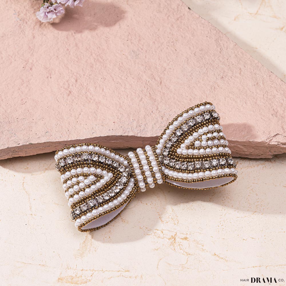 - This hair accessory is perfect for your wedding hair looks! An embellished Hair Bow that is easy to wear and looks good with any outfit!