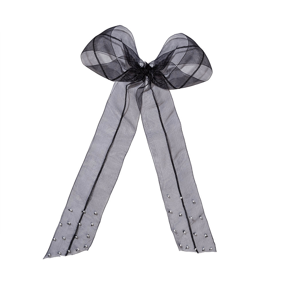Embellished Pearl Hair Bow Alligator Clip - Black