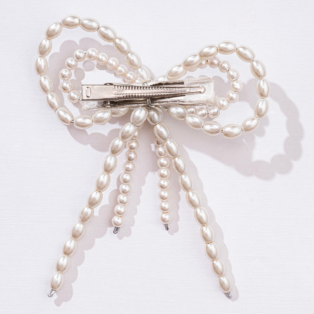 Embellished Pearl Hair Bow Alligator Clip - Off-White