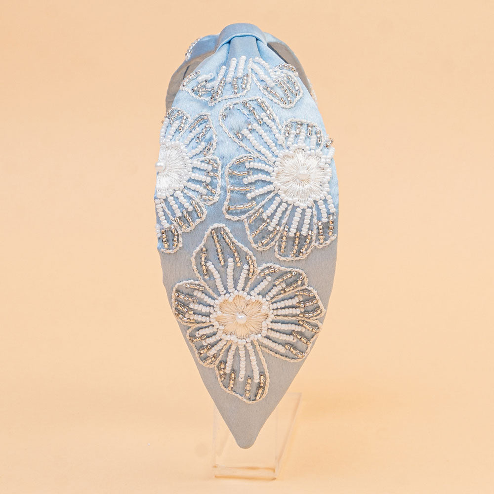 Flora Embellished Knotted Hair Band - Blue