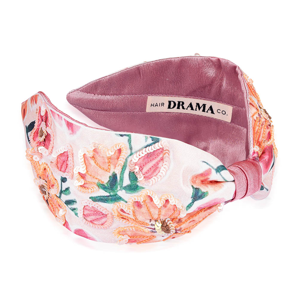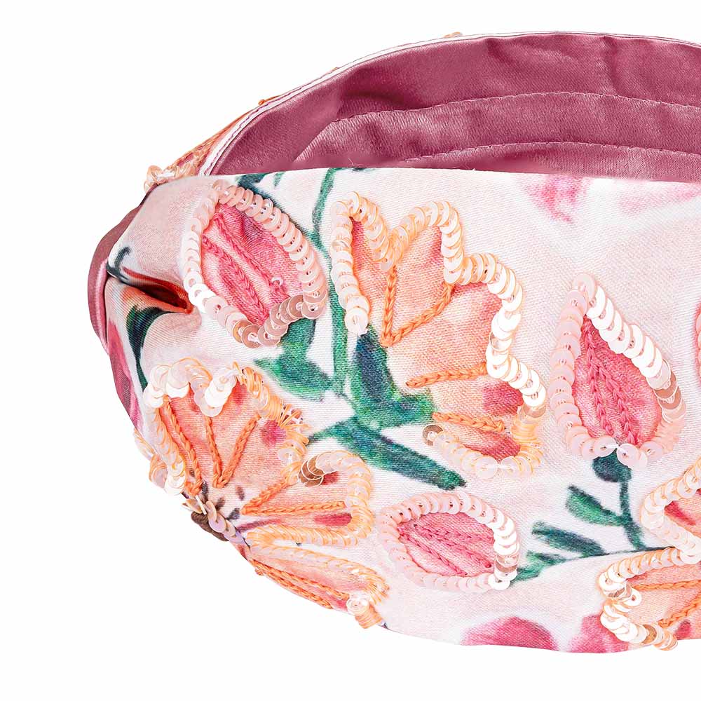 Floral Knotted Hair Band - Pink & Peach