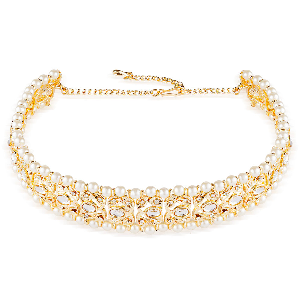 Gold Plated Hair Band with Pearls