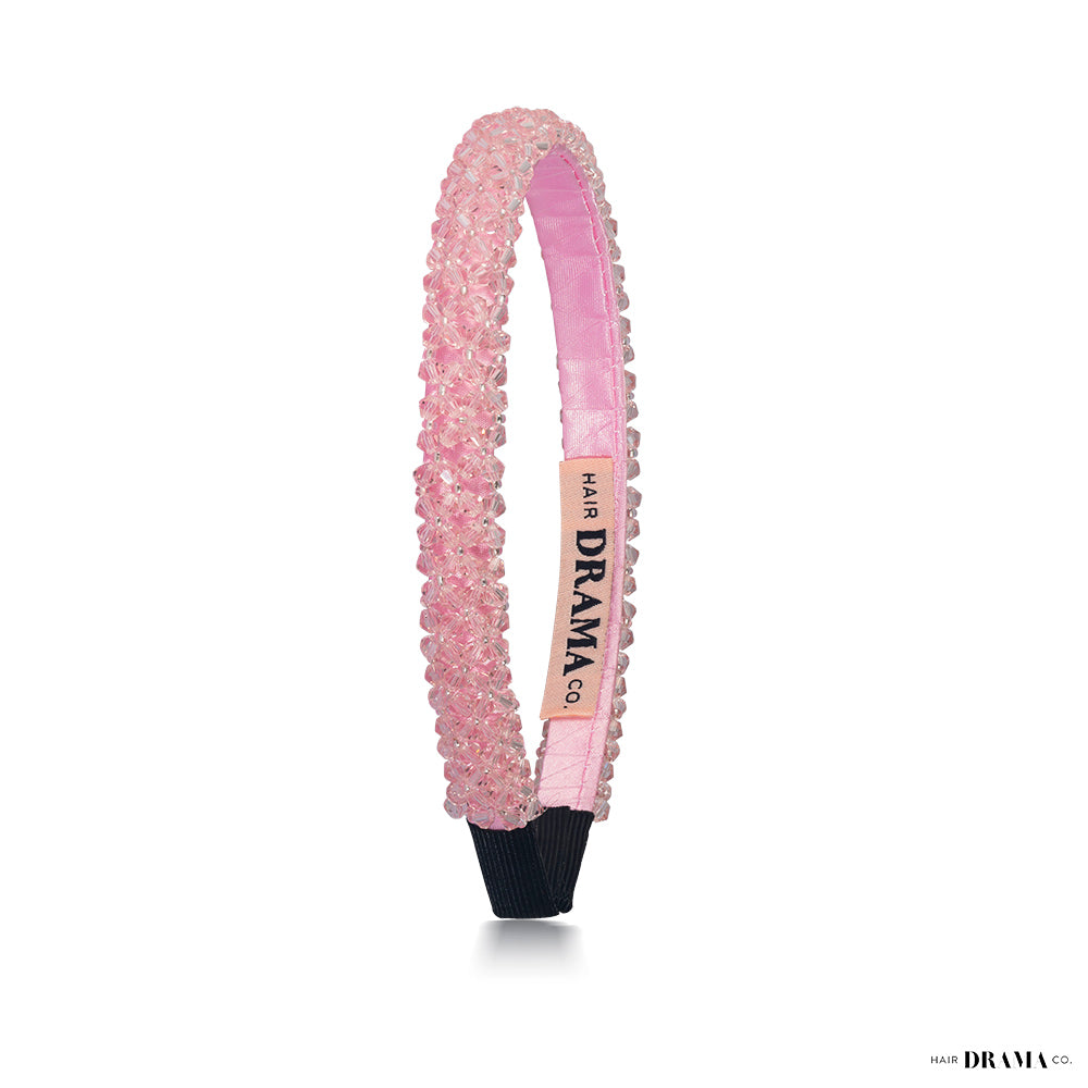 HDC 5 pieces Hair Accessories Gift Set with 1 Crystal Beaded Hair Band, 2 Bow Hair Ties & 2 Mini Clamps - Pink