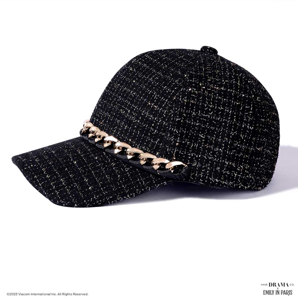 HDC x Emily in Paris Black Tweed Baseball Cap with Gold Chain