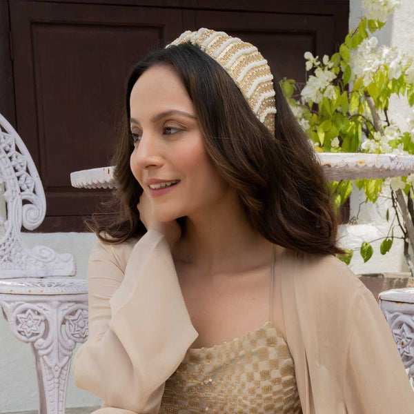 - Elegance never goes out of style. Our selene knotted hair band comes in the classic gold and off-white hues.