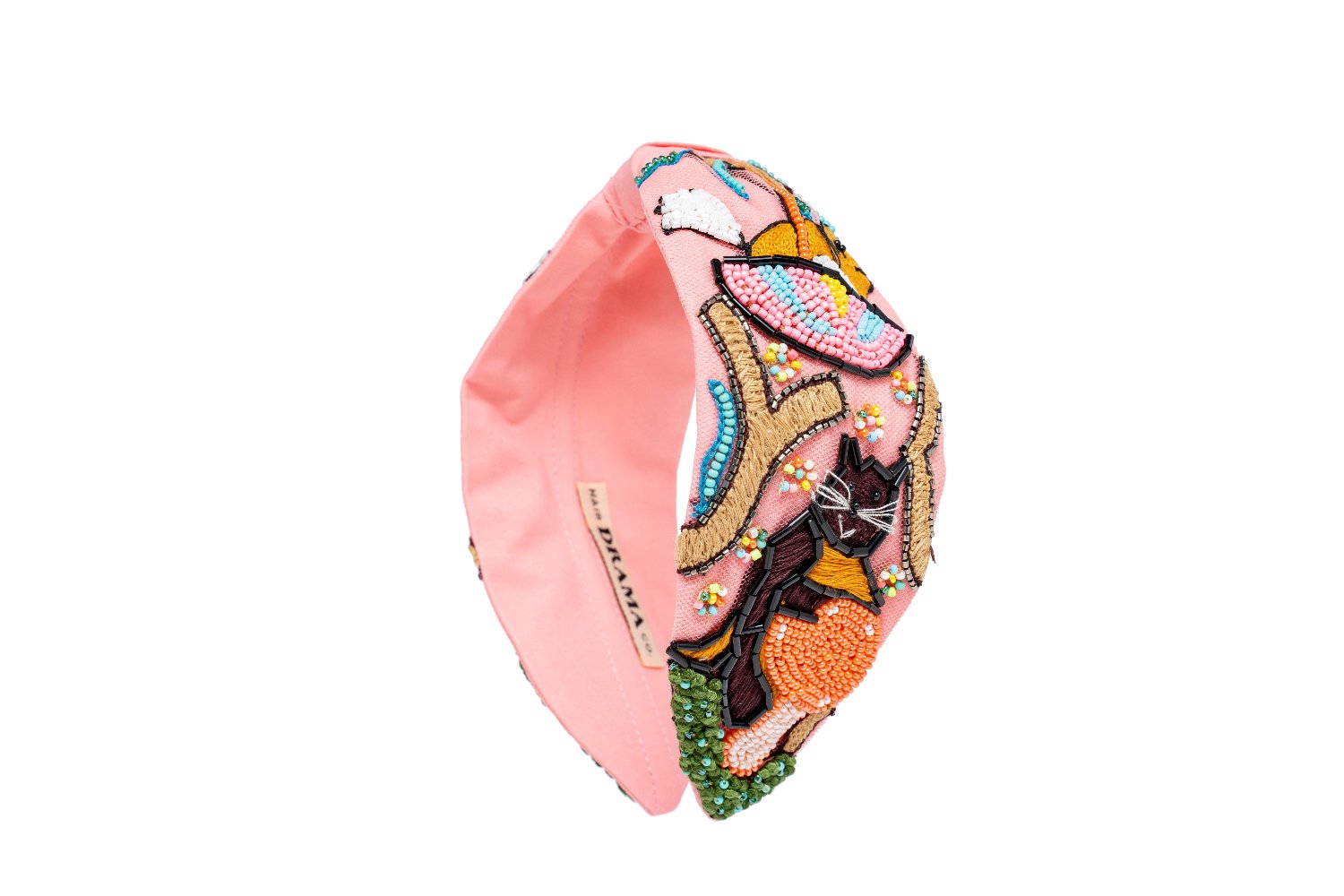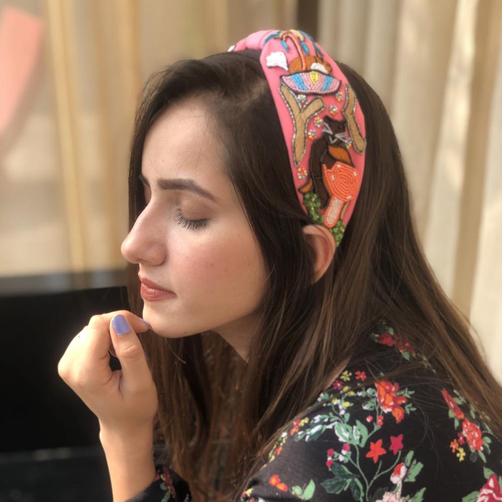 Size - Small: For 10 years and below Medium: For 11 years and above Fabric Color: Pink Material Color: Multi Color Thread and Beads Key Features: This knotted headband is from our collection about the planet and its beings. It...