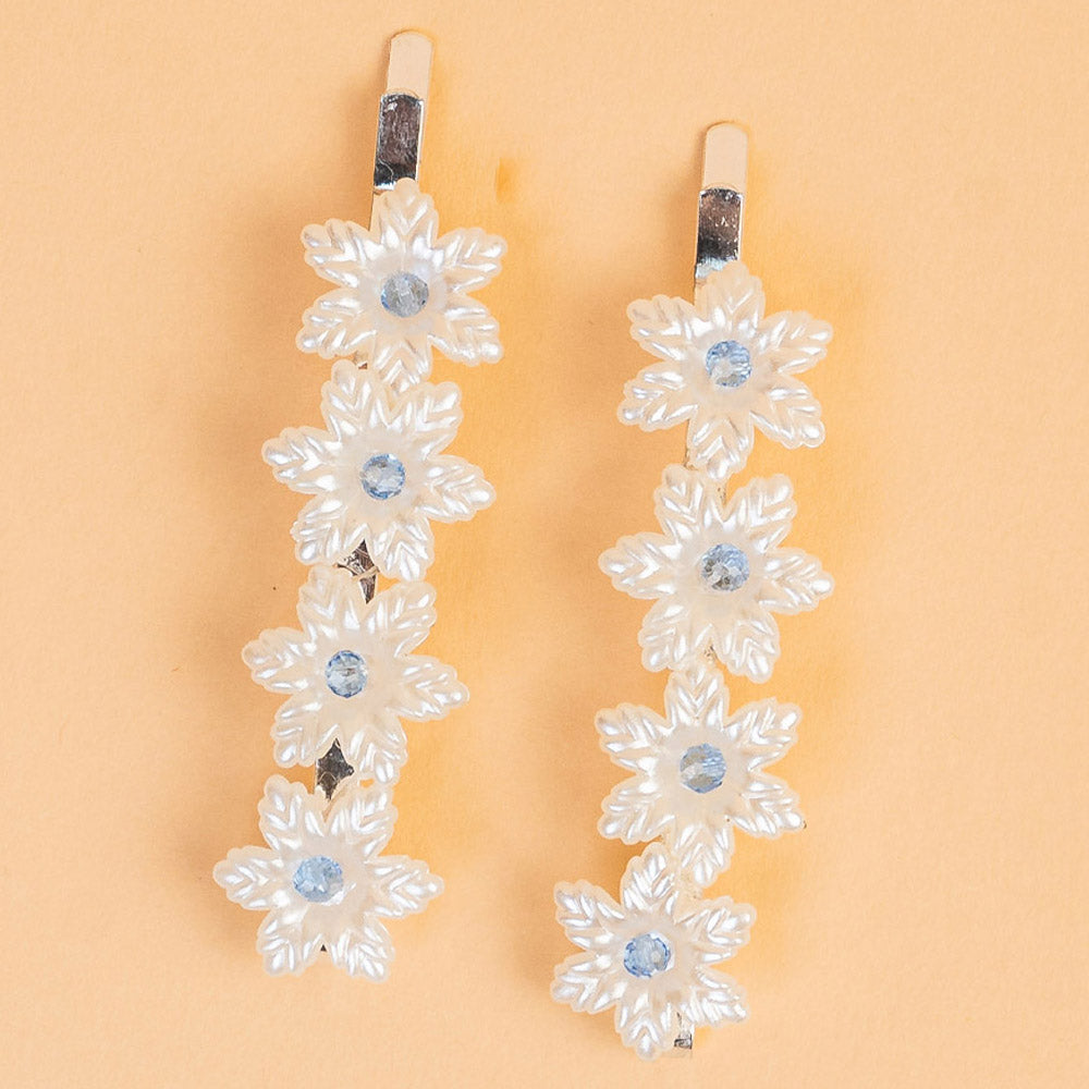 Snowflake Hair Pins - Set of 2 - White & Blue