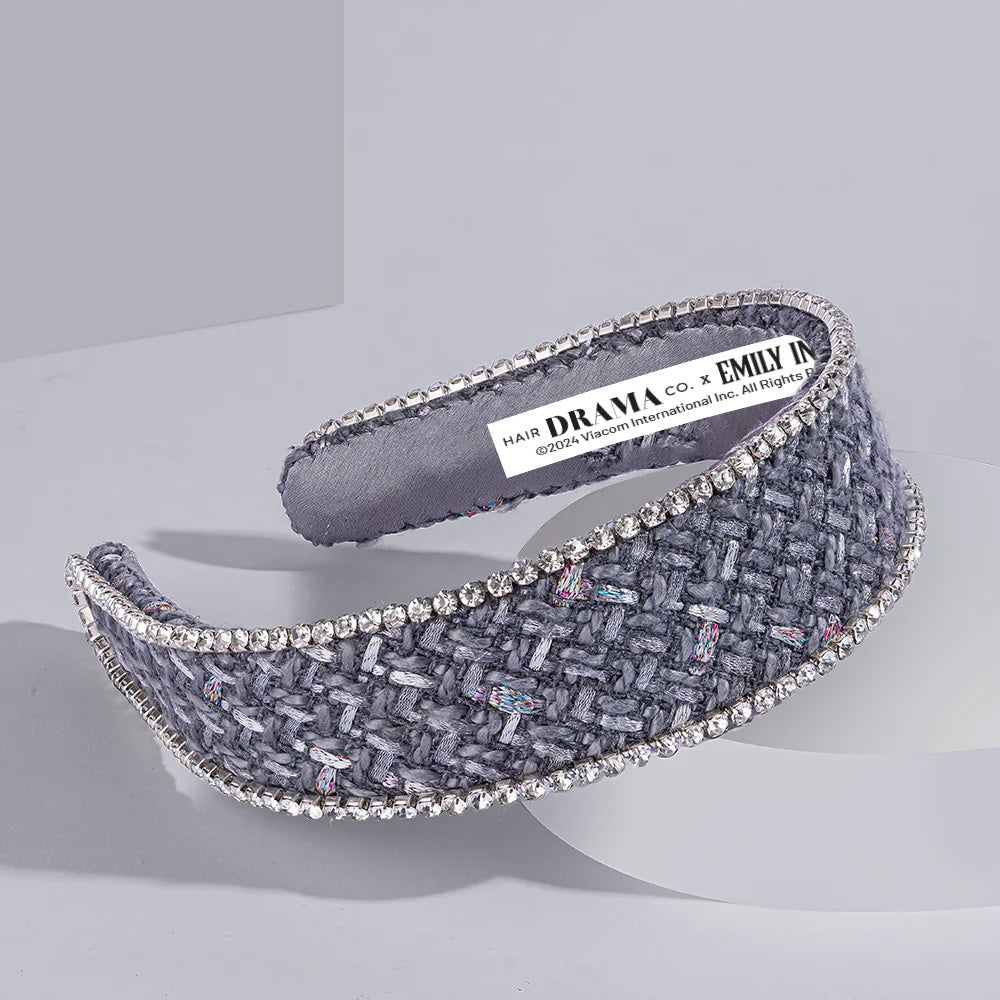 HDC x Emily in Paris Grey Tweed Crystal Flat Hair Band