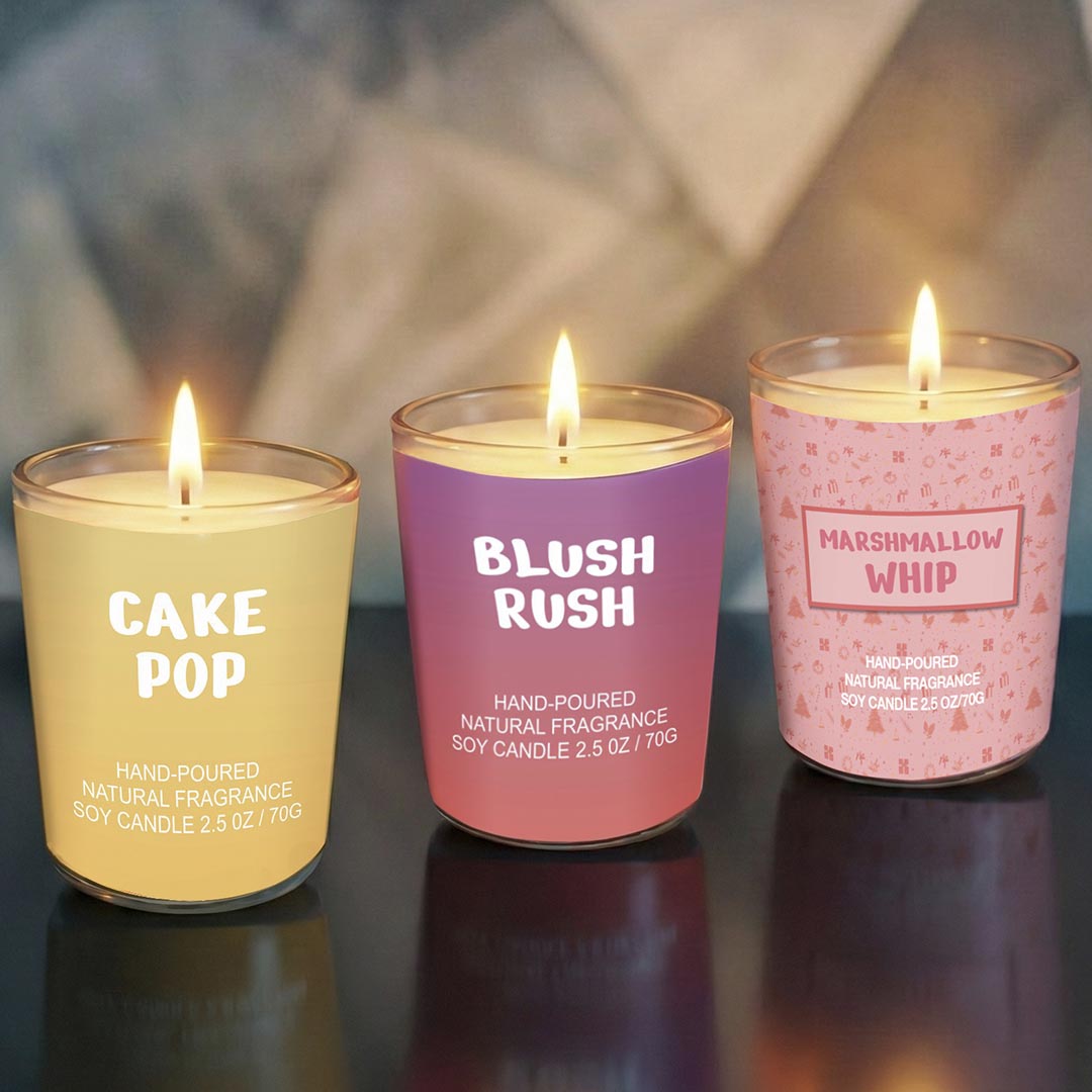 - Set of 3 hand-poured soy wax candles in 3 luxe scents;