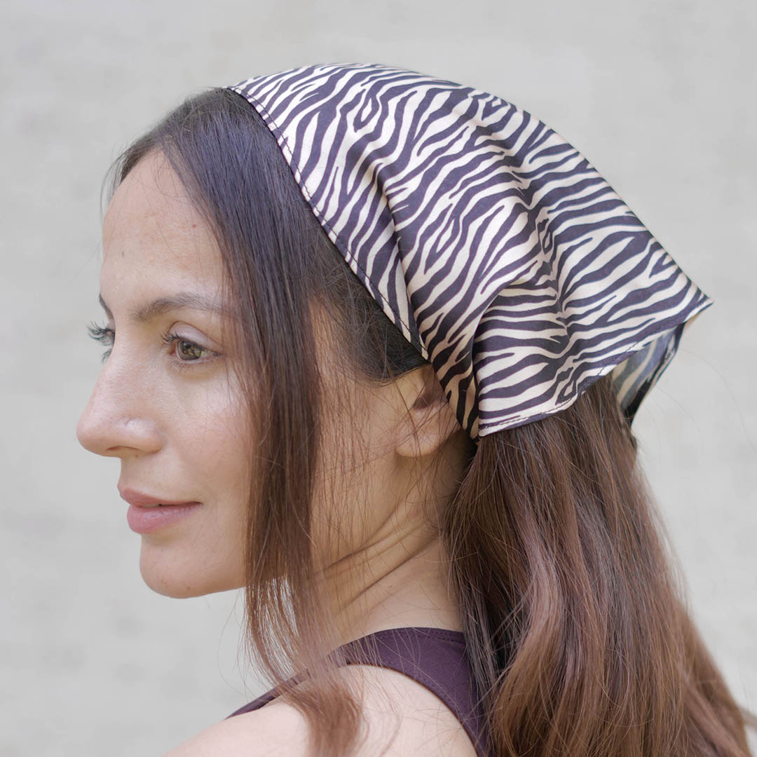 Strike the perfect balance between bold and timeless. This animal inspired print head scarf, crafted from silk satin in rich tones of browns, is an effortless way to make a statement. The elasticated back ensures it stays put — whether you’re wearing your hair open, tied, or in a low bun. It’s equal parts edgy and chic, perfect for elevating everything from basics to bold fits.